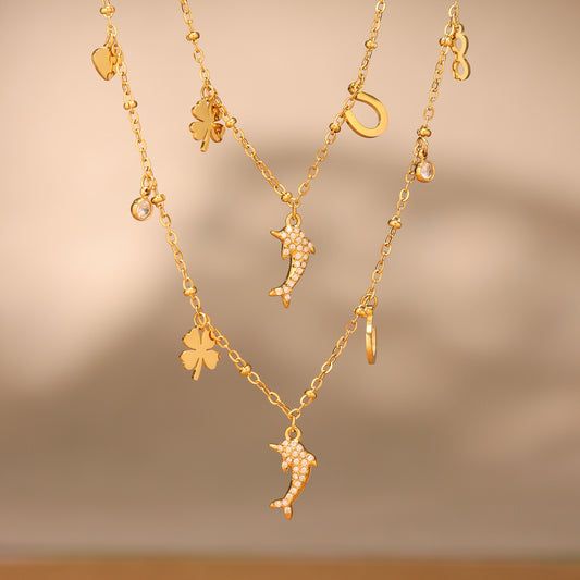 Stainless Steel 5A Zircon Dolphin Collarbone Chain Necklace Jewelry