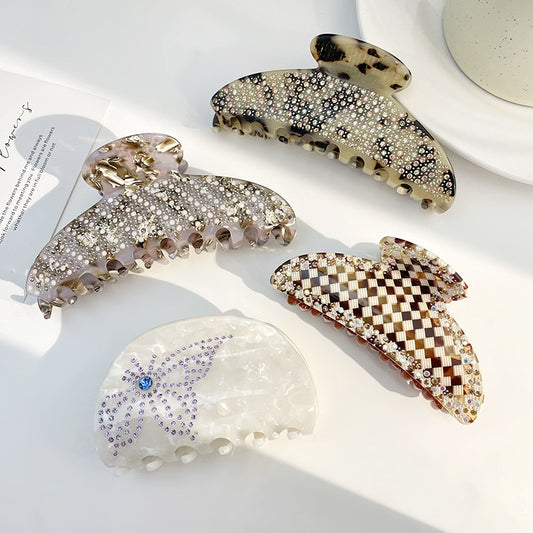 Acetic Acid Grab Clip Full of Diamonds, Crescent Shaped Back of The Head, Shark Clip