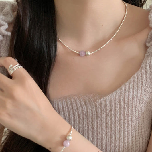 S925 Sterling Silver Rice Grain Amethyst Texture Bead Necklace Collarbone ChainRegular price $102.76 USDRegular priceUnit price / per$0.00 USDSale price $102.76 USD