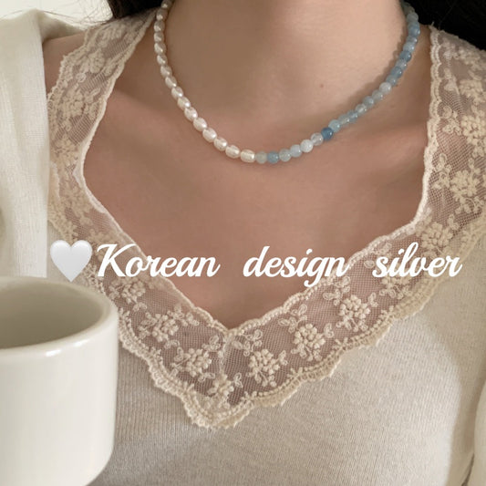 Handmade Minimalist Silver Jewelry S925 Pure Silver Aquamarine Treasure Pearl Splicing NecklaceRegular price $92.05 USDRegular priceUnit price / per$0.00 USDSale price $92.05 USD