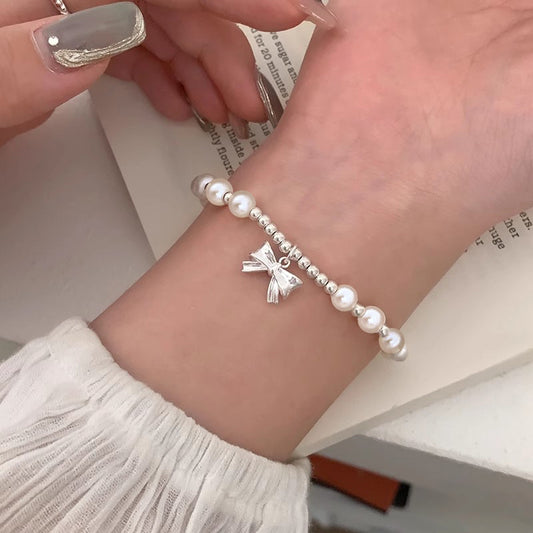 S925 Sterling Silver Bow Premium Imitation Pearl Bracelet, Sweet and Girly Heart for WomenRegular price $33.22 USDRegular priceUnit price / per$0.00 USDSale price $33.22 USD