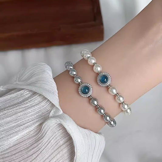 925 Sterling Silver Aquamarine Faux Pearl Bracelet, Women's Exquisite Bracelet AccessoryRegular price $46.99 USDRegular priceUnit price / per$0.00 USDSale price $46.99 USD