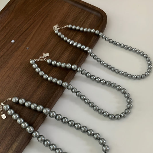 S925 Sterling Silver Necklace, High-quality Crystal Pearl Gray Round, Personalized Collarbone Chain for WomenRegular price $41.00 USDRegular priceUnit price / per$0.00 USDSale price $41.00 USD
