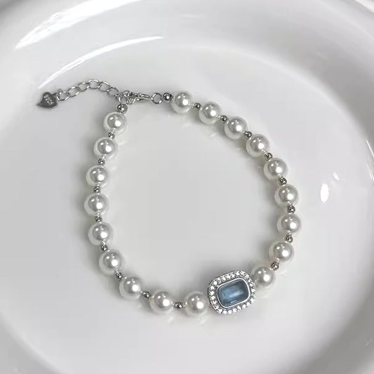 S925 Pure Silver Aquamarine High-Quality Faux Pearl Bracelet Bracelet for WomenRegular price $45.99 USDRegular priceUnit price / per$0.00 USDSale price $45.99 USD