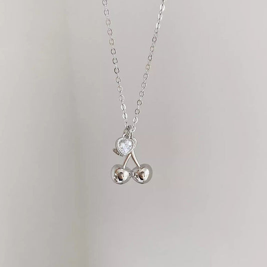 S925 Pure Silver Cherry Heart Necklace with Heart-shaped Sparkling Diamond Collarbone ChainRegular price $42.00 USDRegular priceUnit price / per$0.00 USDSale price $42.00 USD