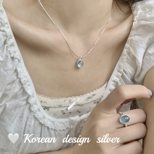 S925 Pure Silver AquamarineTreasure Necklace Pendant Snake Bone Chain Jewelry for WomenRegular price $63.00 USDRegular priceUnit price / per$0.00 USDSale price $63.00 USD