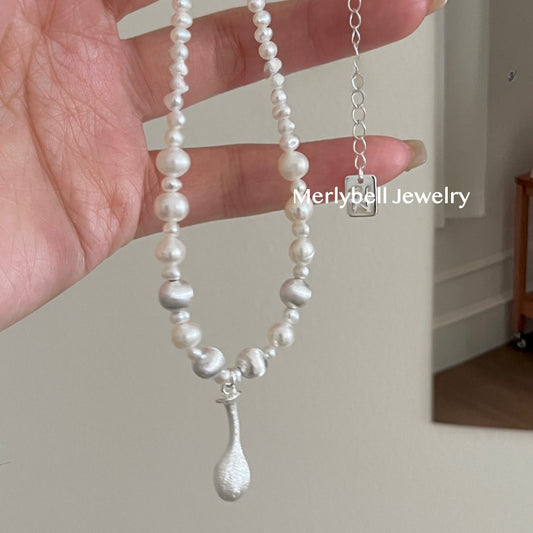 S925 Sterling Silver Brushed Water Droplet Pearl Necklace, Layered and High-end for WomenRegular price $164.38 USDRegular priceUnit price / per$0.00 USDSale price $164.38 USD