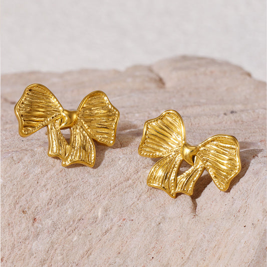 Bow Earrings and Earrings Made of Stainless Steel Plated with Real Gold