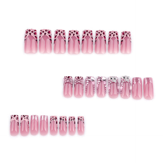 French Leopard Print Nail Art, Sparkling Diamond, Explosive Cartoon, Cat Fake Nail, Flower Bow, Wearable Nail Piece