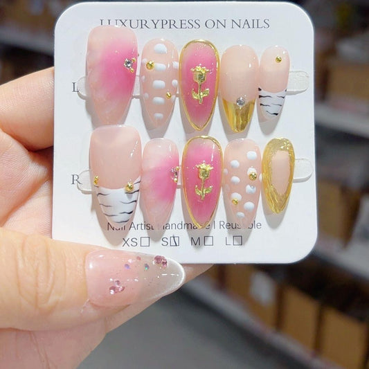 Handmade Medium To Long Almond Shell Gradient Three-dimensional Shell