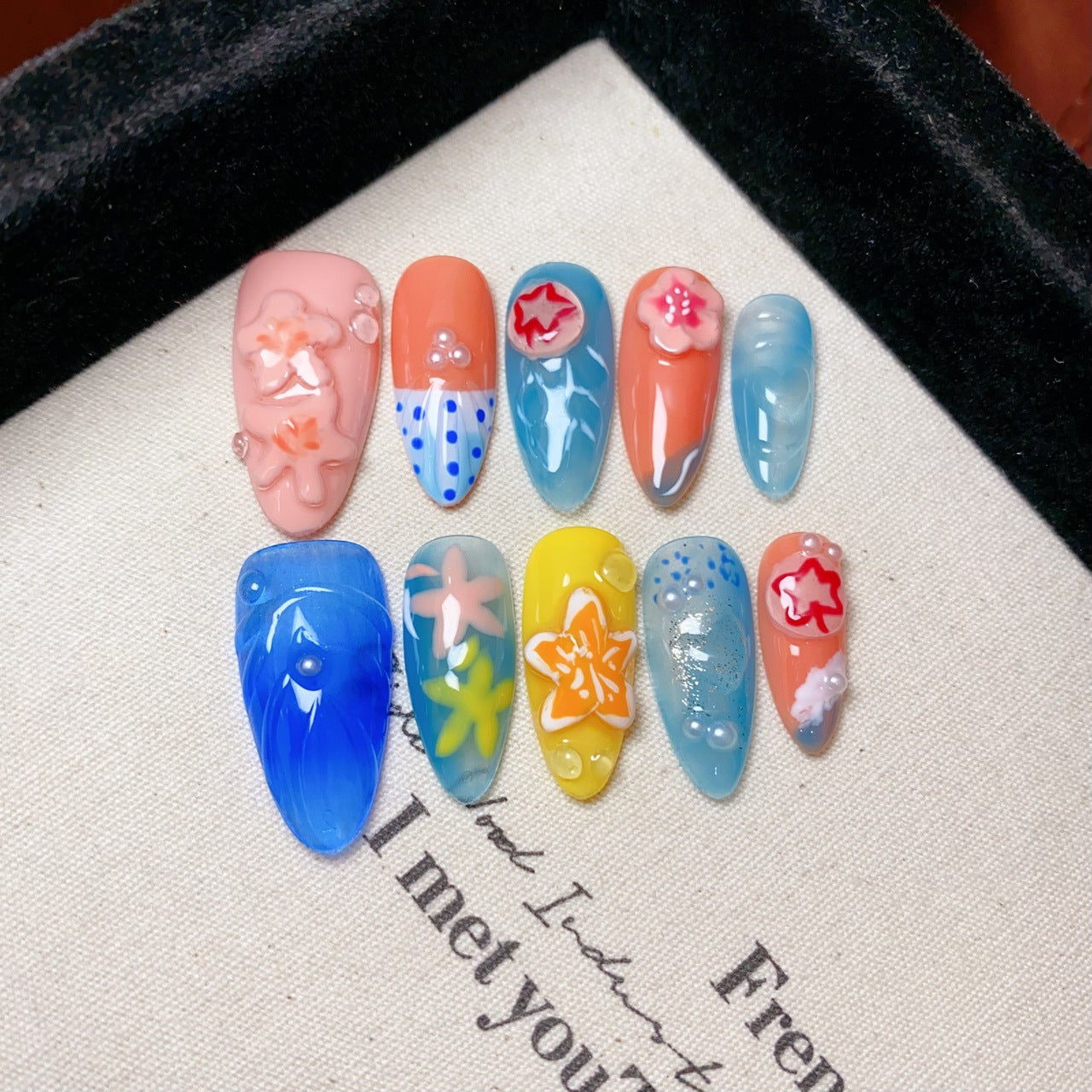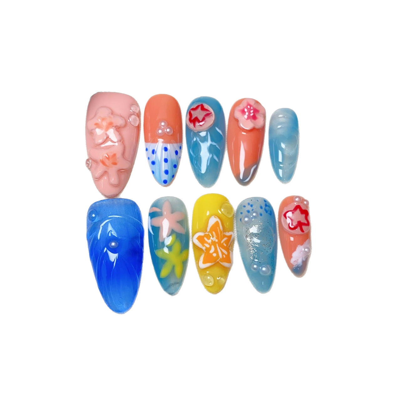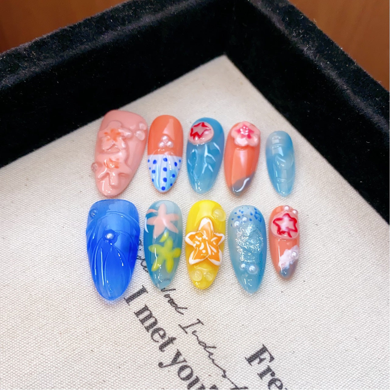 100% Handmade Wearing Nail, Almond Nail Art for Spring and Summer, European and American High-end Nail Art