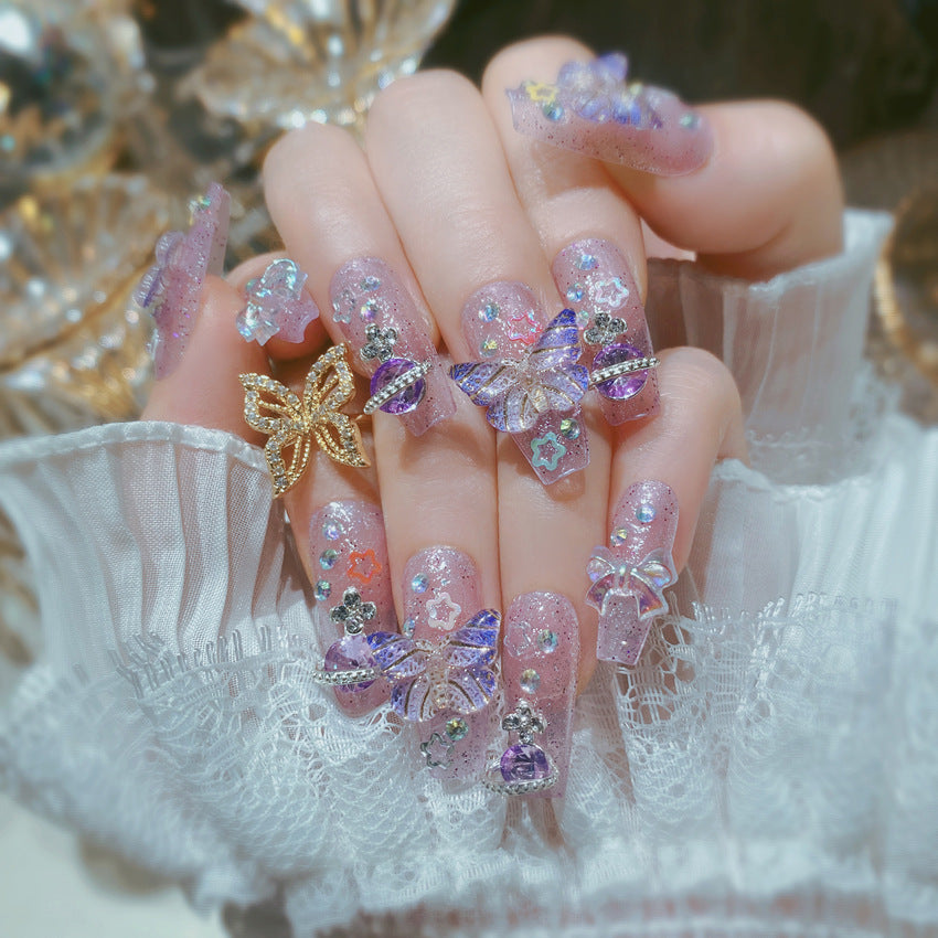 Handmade Wearing Armor Piece Purple Explosion Flash 3D Butterfly Aurora Planet Detachable Fake Nail