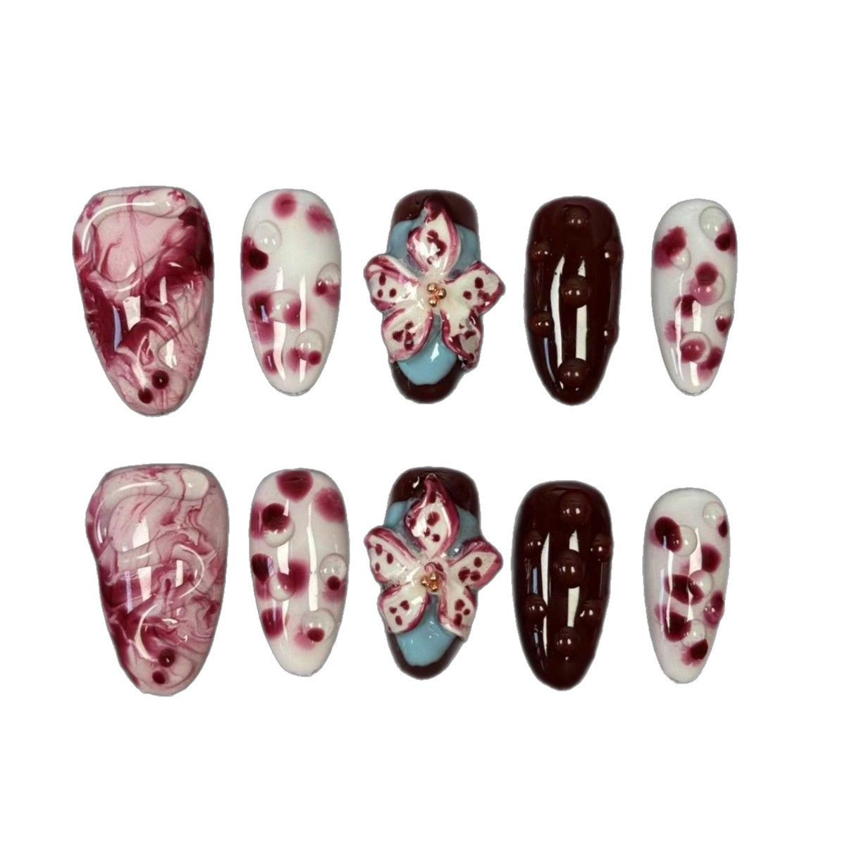 Handmade Wearing, Blending, Hand Drawn, Three-dimensional Carved, High-end Medium To Long Almond Shaped Nail Art Pieces