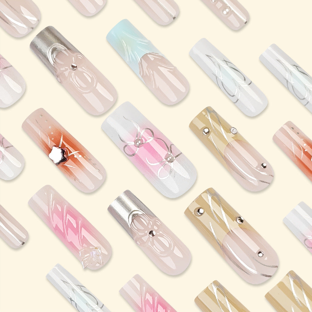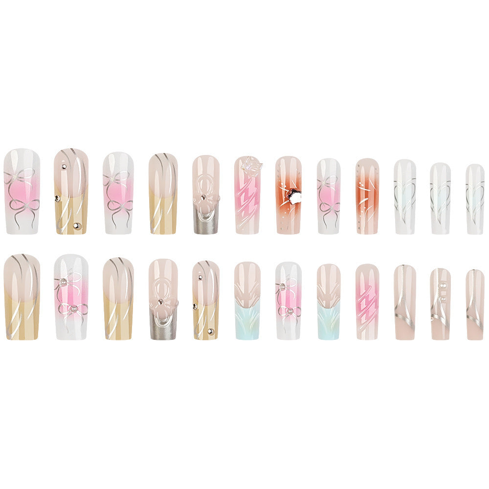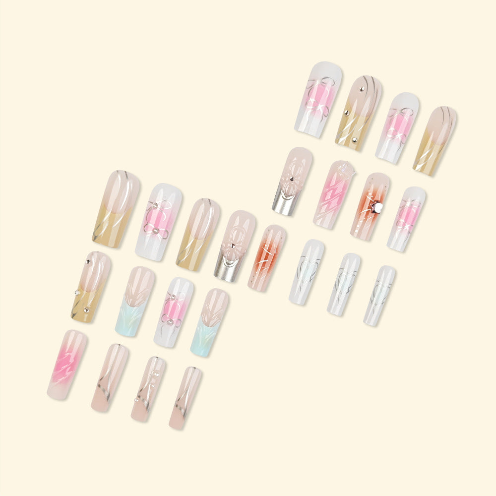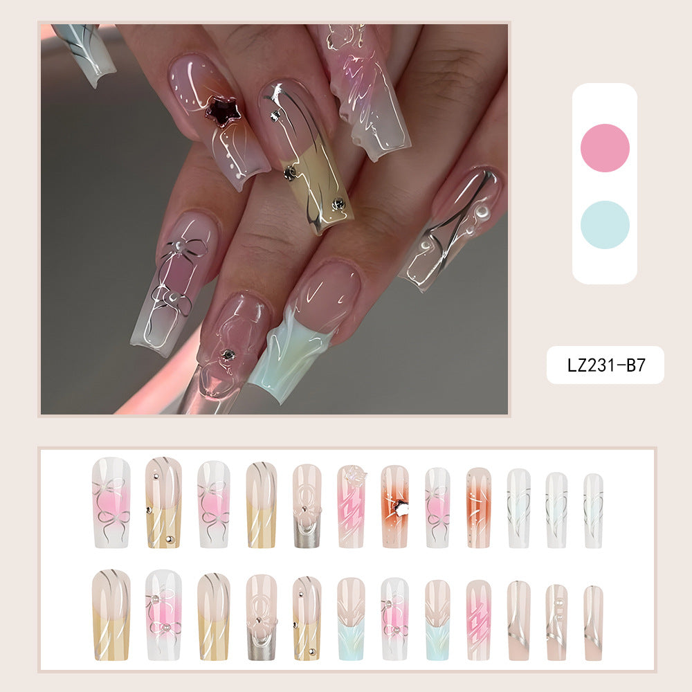 Star Studded Diamond Long Nail Art Drip Glue French Fake Nail Patch 3D Three-dimensional Butterfly Wearable Nail